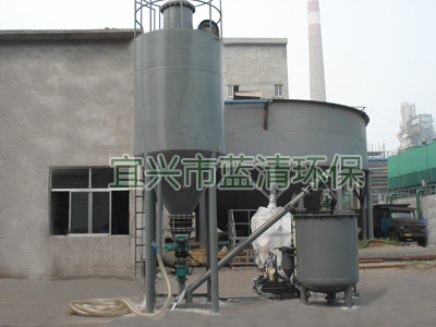 石灰乳溶解箱由罐体、搅拌机组成;石灰粉物料进入罐内与自来水由搅拌机直行搅拌溶解成一定量浓度的石灰乳液。