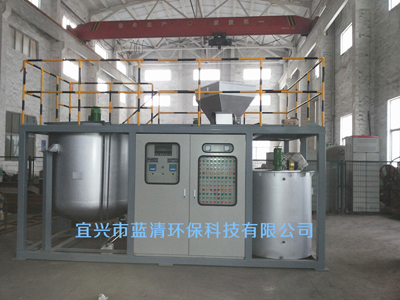 本公司生产的一体化双碱脱硫加药及控制设备是针对脱硫废水中含有大量的SO42-、Ca2+、Mg2+、F-以及重金属离子进行专项治理,通过向废水投加Ca(OH)2溶液,调整PH值后一方面将部分酸根、卤族离子中和为相应的无机盐,另一方面将使部分轻、重金属离子反应生成氢氧化物以便沉淀分离出,废水中和后显弱碱性,有利于进一步针对重金属离子进行反应与结晶沉淀。同时向废水中添加有机硫,有机硫是选择性重金属反应物,对Cr3+\Hg2+\Fe3+等重金属离子有很强的反应能力,且反应后生成的重金属络合物的溶度积大都在10-20以下,保证对废水中重金属离子的处理达标.
